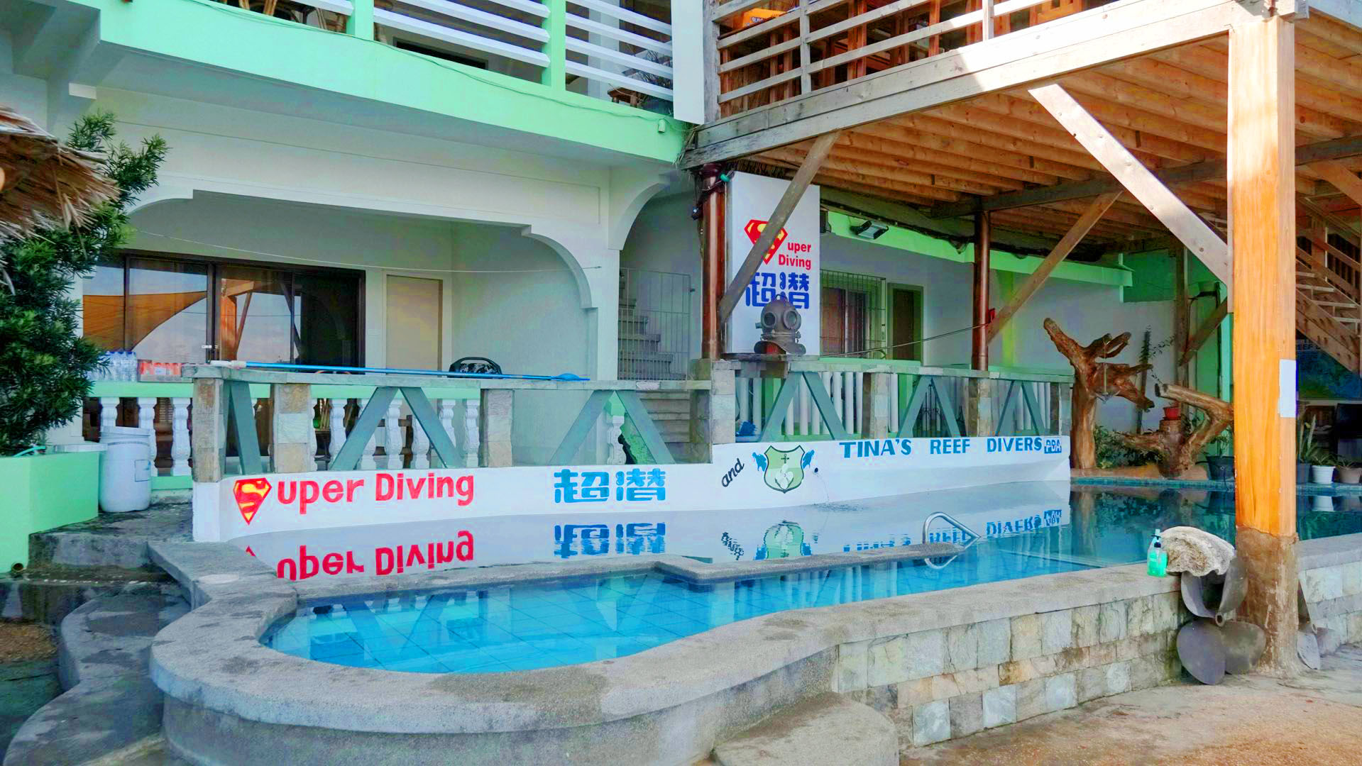 Tina's Sunset Cottages, Restaurant @ Dive Center combines cottage accommodations with dining and diving services.